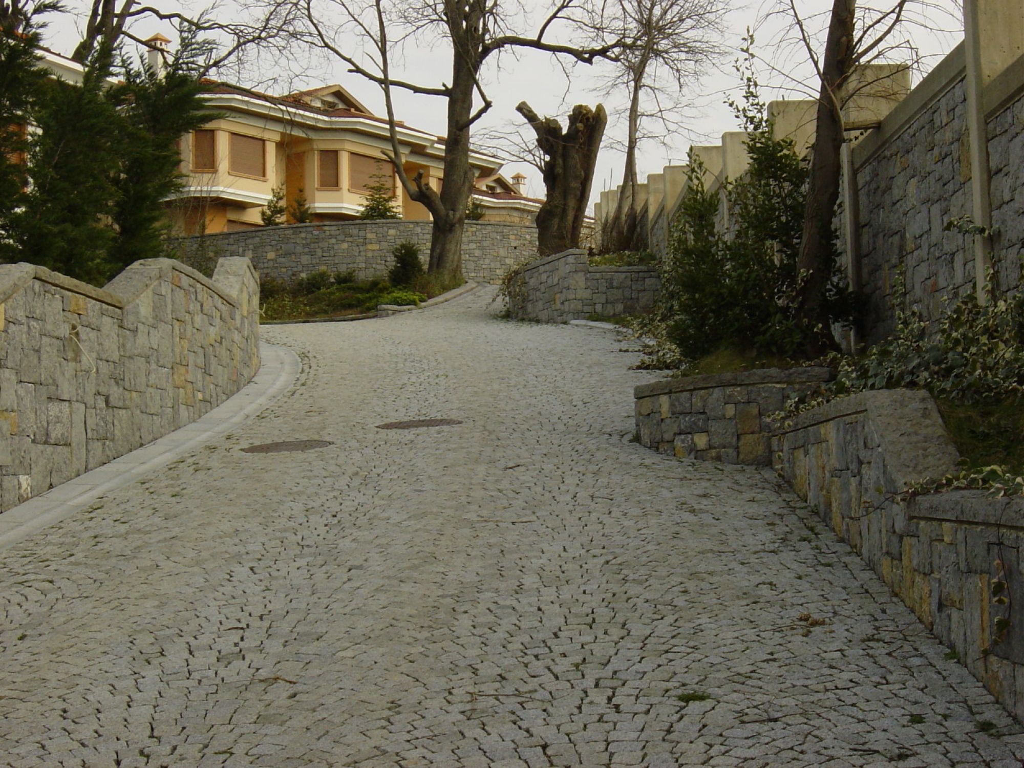 Hasbahçe Evleri’nin taş yollar, taş duvarlar ve havuz gibi ortak alanlarını tasarlayıp, uyguladık. Tarihi ağaçların yer aldığı sitede yeni bitkilendirme çalışmalarımız